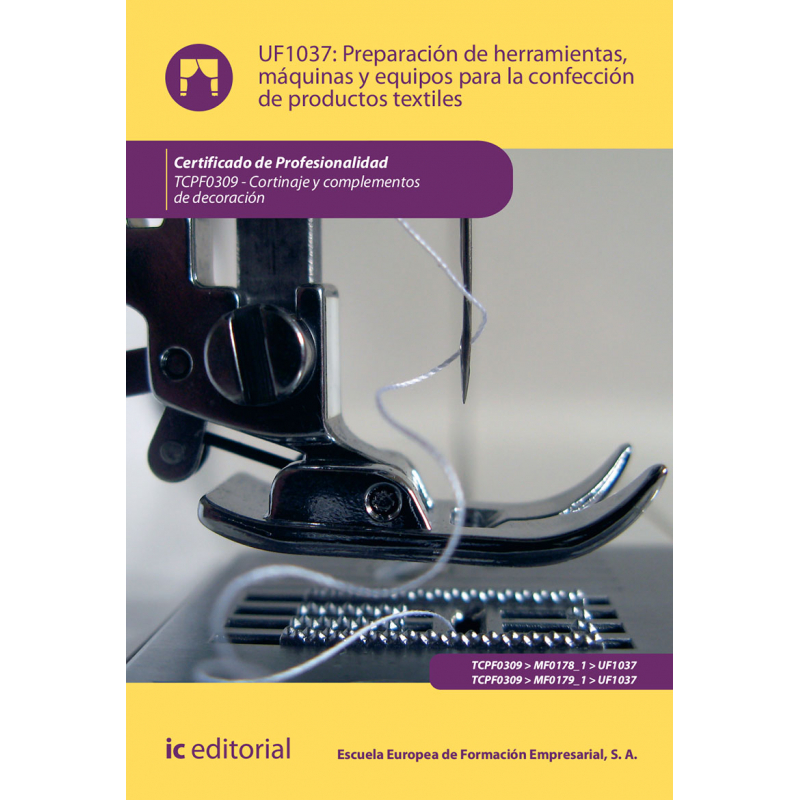 Preparación de las máquinas, útiles y accesorios para acabados en confección de cortinas y complementos de decoración