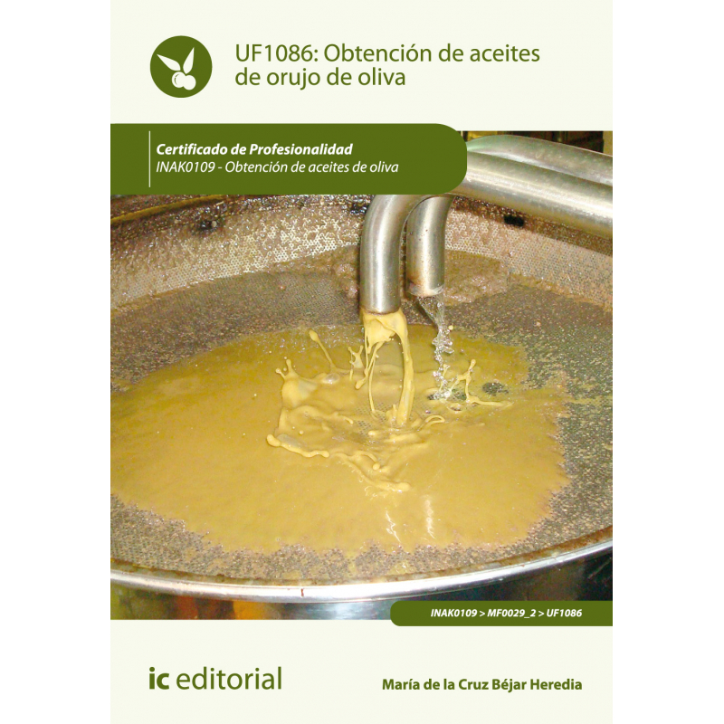 Identificar los procesos y las operaciones que se realizan en la obtención de aceites de orujo de oliva, asà como los equipos y la maquinaria utilizados. Analizar los métodos fÃsicos y quÃmicos que se llevan a cabo en la obtención de aceite de orujo, asà como los procedimientos de muestreo. Aplicar las medidas correctivas necesarias durante los controles de calidad y los registros necesarios en el proceso de obtención del aceite de orujo de oliva. Reconocer las medidas de prevención de riesgos laborales que tienen que implantarse en una orujera y los primeros auxilios básicos a realizar en caso de accidente. Identificar el procedimiento a llevar a cabo en la gestión de residuos y subproductos que se generan en la orujera y sus posibles aplicaciones después de un tratamiento adecuado.